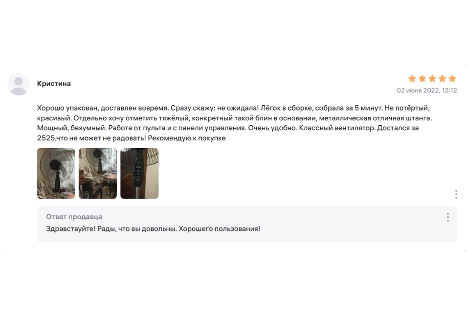 Пользователи, уже оценившие этот вентилятор, отмечают его исключительную устойчивость при максимальной высоте и высокую результативность охлаждения: даже на втором режиме скорости устройство способно за считанные минуты создать комфортную прохладу в комнате, что делает его отличным выбором для жарких летних дней.