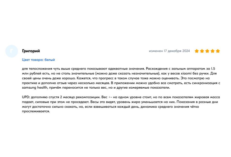 К преимуществам модели можно отнести возможность регистрации неограниченного числа пользователей — идеальный вариант для больших семей или спортивных клубов. Также стоит отметить высокую точность измерений, поддержку популярных фитнес-приложений и наличие батареек в комплекте для быстрого старта.
