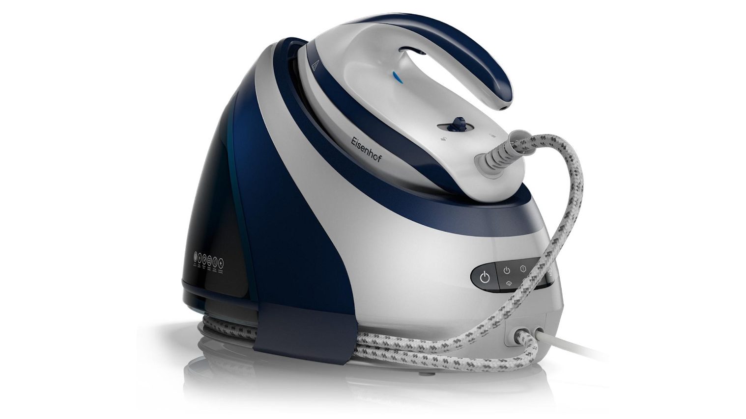 Открывает рейтинг парогенератор Eisenhof VS700 Pro с функцией вертикального отпаривания и большим количеством положительных отзывов. Устройство сочетает давление 8 бар и паровой удар 600 г/мин — это уровень, близкий к профессиональному сегменту. Постоянная подача 160 г/мин позволяет с первого прохода отпаривать плотный хлопок, лен и джинсу без «просадки» пара. Мощность 3000 Вт ускоряет нагрев бойлера и стабильно поддерживает температуру даже при интенсивном пользовании. В бытовых условиях это заметно, когда нужно быстро привести в порядок большую стопку белья или без заморочек отпарить костюм прямо на вешалке.