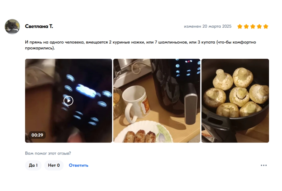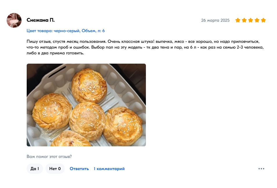 Объем чаши составляет всего 1,9 литра. Съемные решетка и поддон имеют антипригарное покрытие, благодаря чему они легко чистятся после использования. Однако длина кабеля питания в 0,7 м может ограничить возможности по размещению устройства, поэтому рекомендуется располагать его рядом с розеткой.