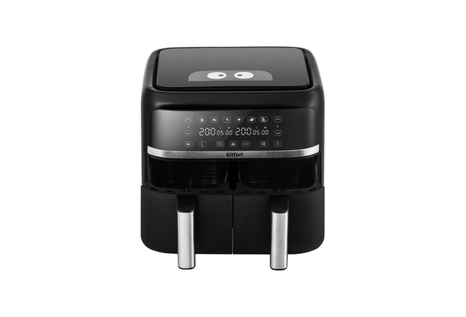 Представляем еще одну модель от российского бренда Kitfort, специально разработанную для небольших семей (1-2 человека) и относящуюся к бюджетному сегменту. Этот аэрогриль с мощностью 1000 Вт отлично выполняет функции жарки и выпечки при температурном диапазоне от 80° до 200°C. Температурные настройки очень тонкие, с шагом всего 5°, что позволяет создать оптимальные условия для каждого блюда. Устройство оснащено таймером на 60 минут и 6 предустановленными программами: «Картофель фри», «Морепродукты», «Выпечка», «Курица», «Стейк» и «Рыба». Если нужно приготовить что-то особенное, то отрегулировать режимы с помощью сенсорной панели.