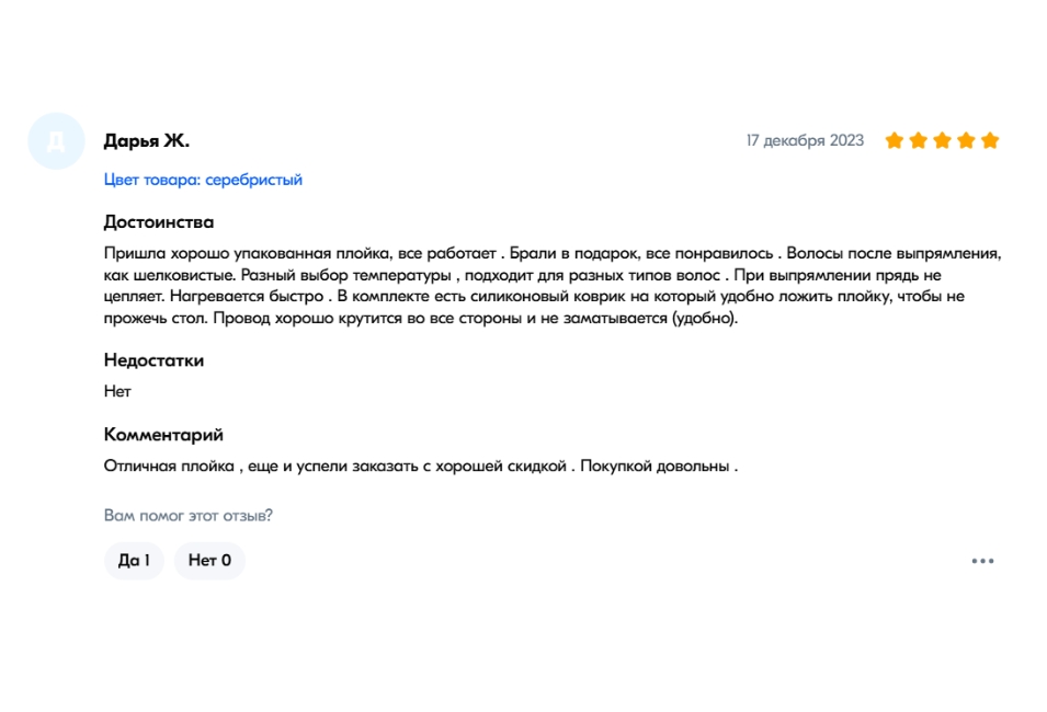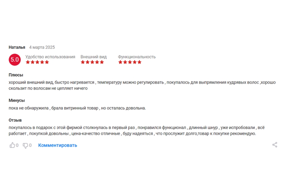 + Быстрый нагрев, неплохой диапазон температур, прочное и безопасное покрытие пластин, устраняет статическое электричество