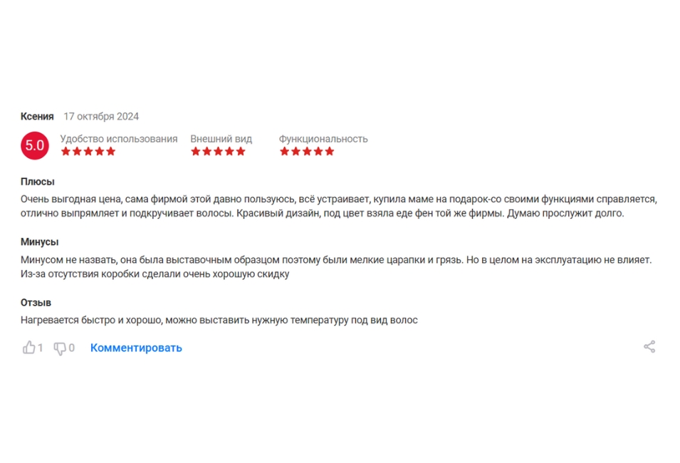- Скучный дизайн, турмалиновое покрытие требует бережного обращения, чтобы избежать царапин